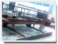 耙架由两个大耙和两个小耙组成十字形,与稍呈圆锥形的池底平行。耙架与竖轴用十字头固定连接,竖轴上的轴承为向心和推力轴承的组合,用润滑脂润滑。水下为滑动轴承,由尼龙衬套等组成,用压力清水润滑。竖轴下端伸入排泥斗,下轴端紧固着刮泥刀,用以刮排泥斗中的积泥,以使均匀排出。驱动装置为三级立式摆线针轮减速机,用牙嵌式联轴器与竖轴连接。该减速机固定在工作桥的机座上。过扭矩安全装置是安全剪切销,装配在芯片嵌式联轴器中。当运行遇有过扭矩情况下,便切断剪切销,保护整台机械设备,不受损坏。 |